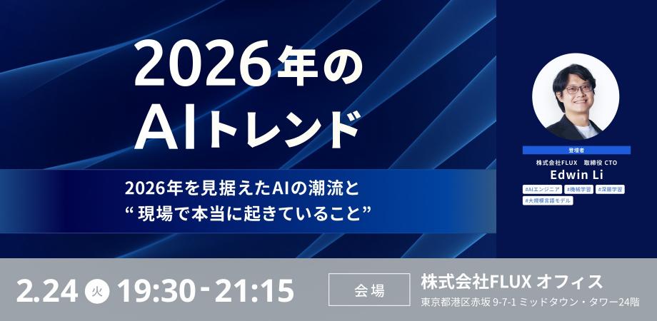 日時:2026年2月24日(火)19:30~21:15(受付開始 19:20)会場:株式会社FLUX オフィス東京都港区赤坂9-7-1 ミッドタウン・タワー24階https://flux.jp/company/最寄り駅: 都営大江戸線「六本木駅」8番出口直結日比谷線「六本木駅」地下通路直結東京メトロ千代田線「乃木坂駅」3番出口より徒歩約3分東京メトロ南北線「六本木一丁目駅」1番出口より徒歩約10分参加費:無料持ち物:名刺定員:30名 ...