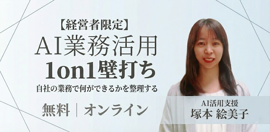 AIに興味はある。でも、「自社の業務で何ができるのか」は整理できていない。 成長フェーズにある中小企業の経営者・事業責任者のための1on1壁打ちセッションです。 ① 現状のよくある... powered by Peatix : More than a ticket.