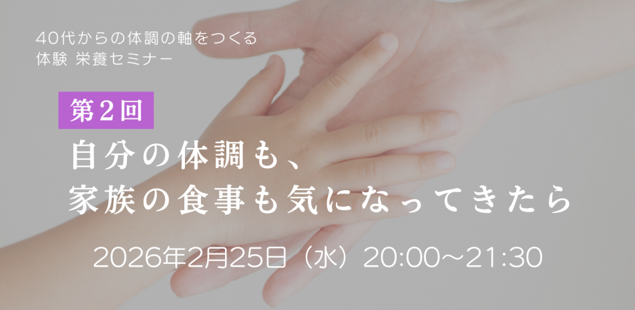 全部を完璧に整えなくていい。今の自分にとって、家族にとって、何を大事にすればいいのかを一緒に整理する体験栄養セミナーです。