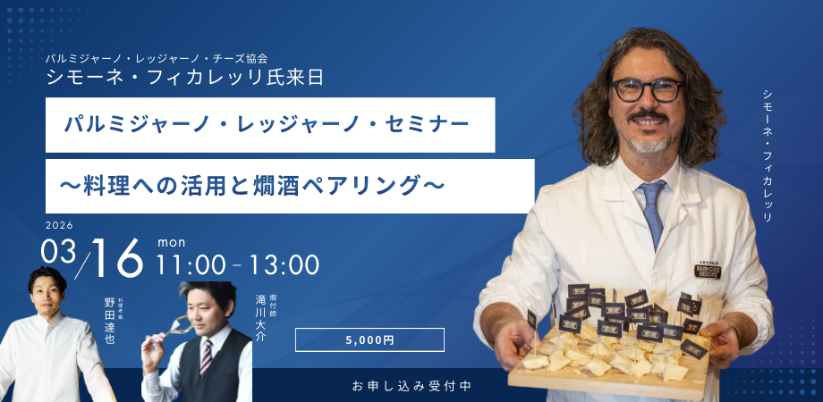イベント詳細 パルミジャーノ・レッジャーノ・チーズ協会のシモーネ・フィカレッリ氏の来日に伴い、「イタリアチーズの王様」と称されるパルミジャーノ・レッジャーノの特別セミナーをプロ向けに開催します。
