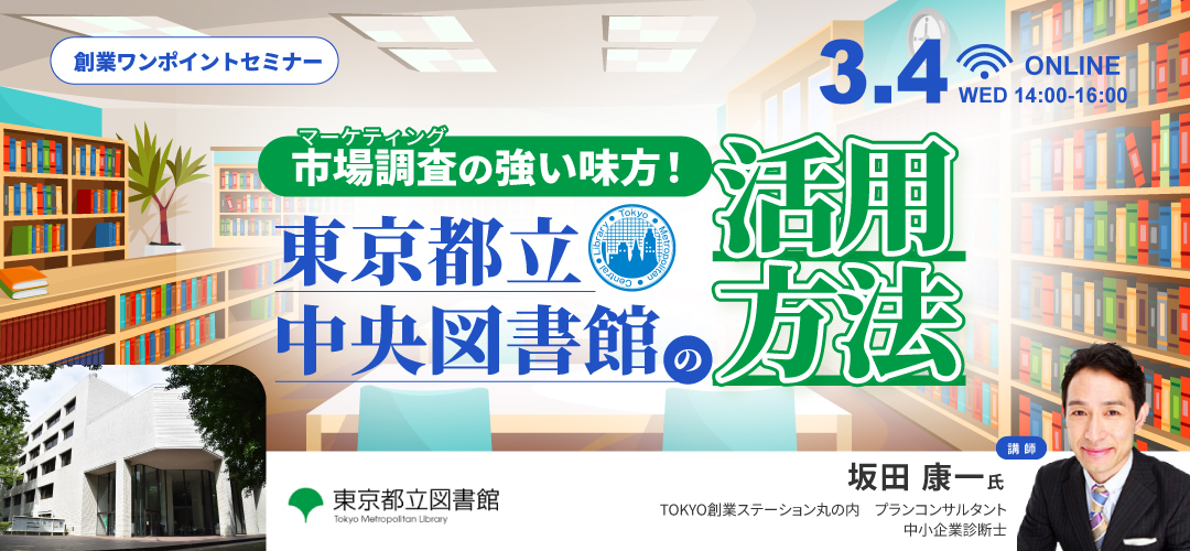 【ワンポイントセミナー】市場調査(マーケティング)の強い味方!東京都立中央図書館の活用方法