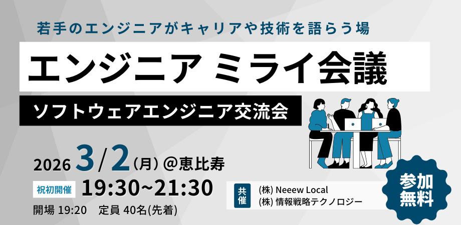 📅 日時:2026年3月2日(月)19:30〜21:30(開場19:20)📍 場所:情報戦略テクノロジー本社 (東京都渋谷区恵比寿4-20-3 15F)💰 参加費:無料👤 対象:ソフトウェアエンジニア限定🎫 定員:40名(先着)