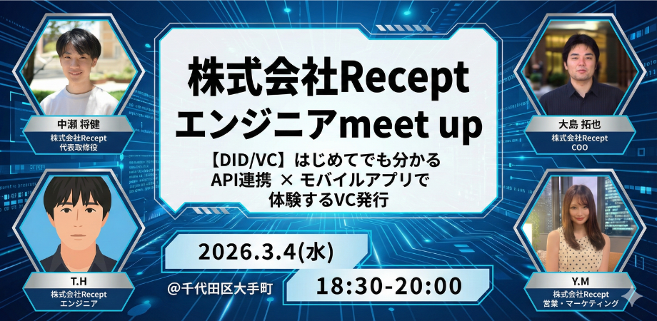 「ReceptやDID/VCのことが少し気になっていた」「DID/VCの仕組みをきちんと理解したい」「スタートアップでのエンジニアキャリアに興味がある」という方やReceptの一員に加わることにご興味あ...