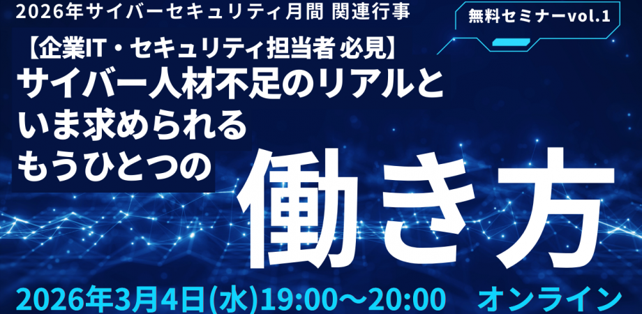 ●本セミナーは、内閣官房国家サイバー統括室が推進する「サイバーセキュリティ月間 関連行事」として開催する3回連続講座です。第2回(3/11・水)セミナーのご案内第3回(3/18・水)セミナー・懇親会のご案内※いずれも単発での参加も可能です。 続きを読む 隠す