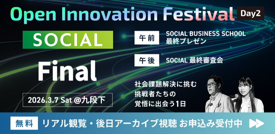「NIKKEI THE PITCH SOCIAL BUSINESS SCHOOL 最終プレゼンテーション」を開催。社会起業家の道に本気で挑戦する2期生たちが、学びの成果の集大成を事業構想として発表します。リアル聴講・アーカイブ視聴は無料です。