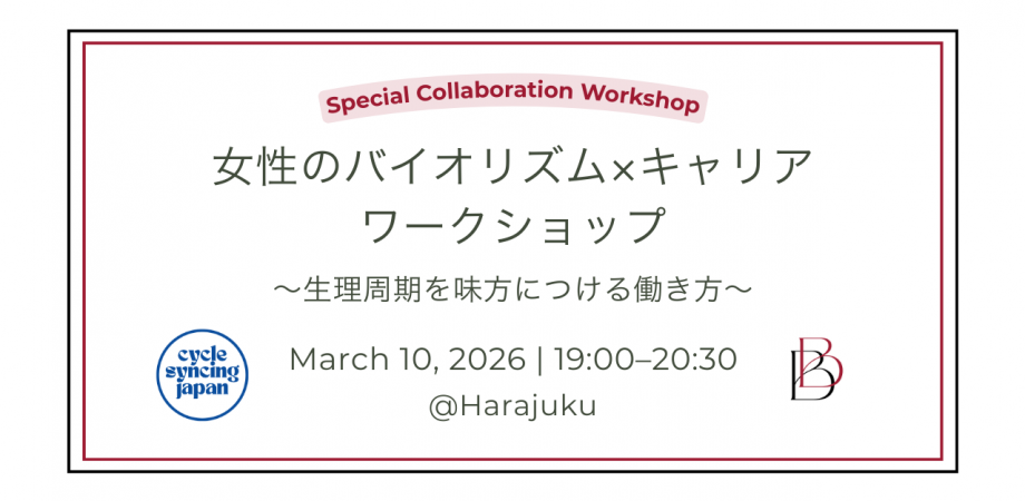 今回のワークショップは、女性のリズムに寄り添う「Cycle Syncing Japan」と、バイリンガル女性コミュニティ「Bloom Beyond」によるコラボイベントです。