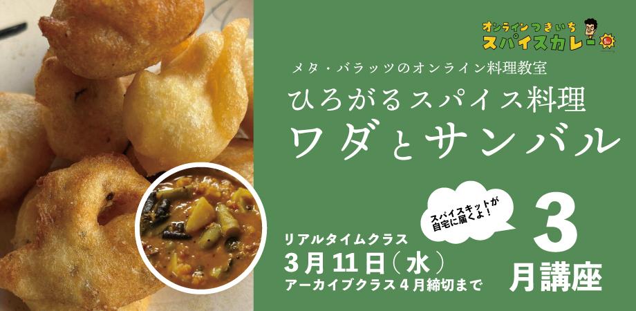 【3月講座】ひろがるスパイス料理 3月のテーマ「ワダとサンバル」