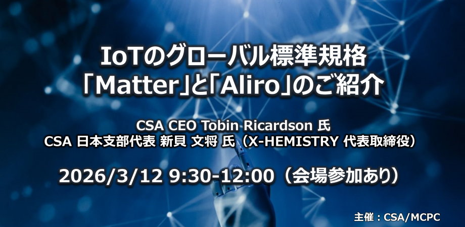 通信事業者向けにMatterの技術セミナーを開催いたします。本セミナーには、CSA日本支部代表 新貝氏、CSA CEO Tobin Ricardson氏、会長 Musa Unmehopa氏の他、アライアンス関係キーマンも参加し、MatterをはじめとしたCSAの取り組みをご紹介します。