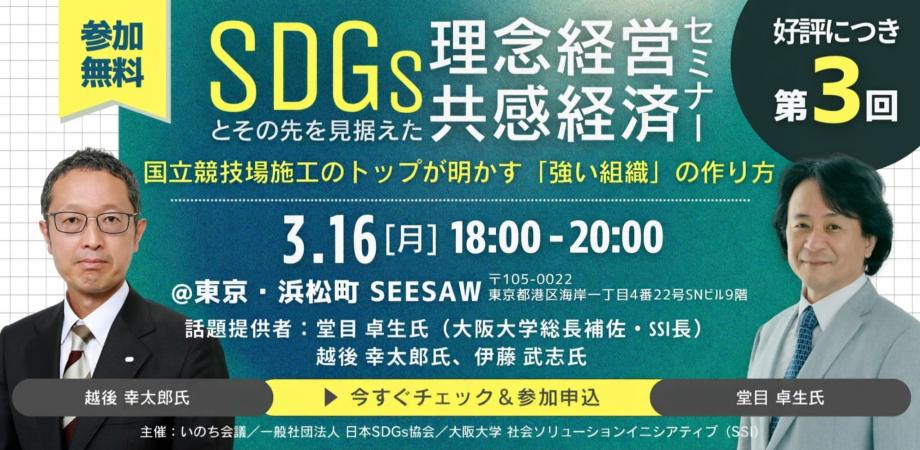 イベント詳細 【第3回】2026年03月16日:SDGsとその先を見据えた理念経営・共感経済セミナー大阪大学×日本SDGs協会 共創セミナー
