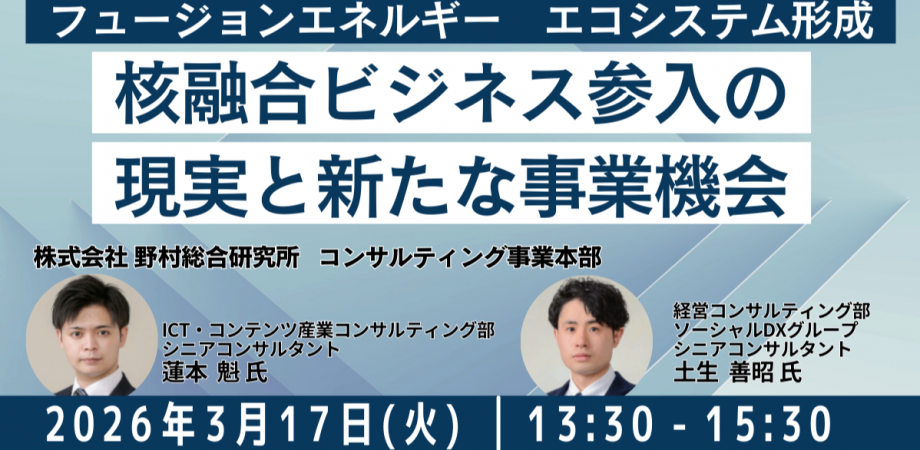 イベント詳細 【タイトル】産業化が加速する核融合市場の現在地を読み解く核融合ビジネス参入の現実と新たな事業機会~エコシステム形成の進展と企業参入のポイントを徹底解説~