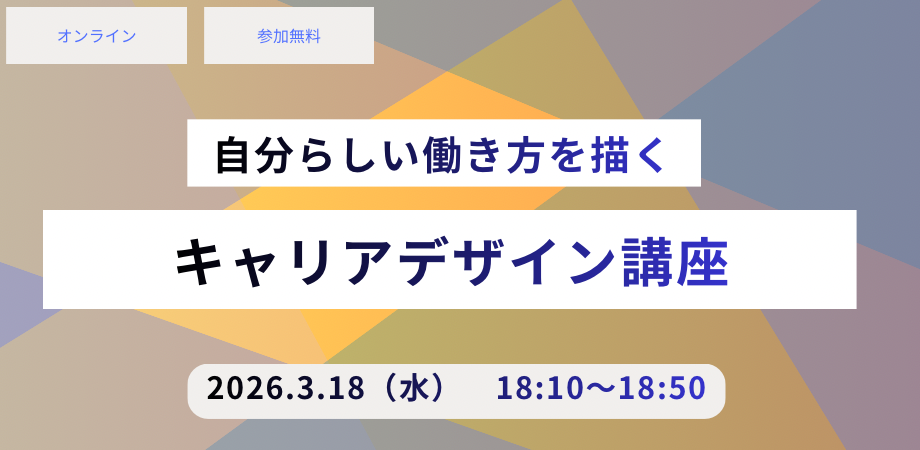 ※本イベントは初回参加者を対象としております。【キャリアデザイン講座】にご参加いただいたことがある方は、ご遠慮くださいますようお願い申し上げます。