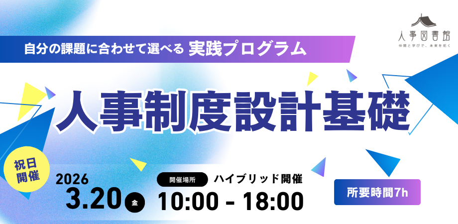 イベント詳細 ※ご都合の良い日程が見つからない場合は、人事のプロ実践講座の特設サイトで別日程をご検討ください。人事制度は「等級」「報酬」「評価」の3つの仕組みで成り立っています。それぞれを個別に学ぶだけでは、制度全体の一貫性や連動性を理解することは難しく、実際の運用で「評価と報酬がつながらない」「等級が曖昧で評価が機能しない」といった課題が生じてしまいます。
