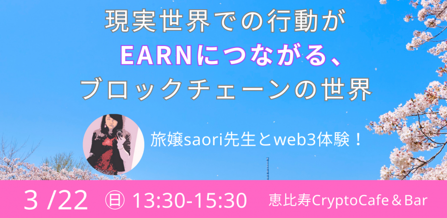 イベント詳細 3月は「ブロックチェーンを“遊びながら体験する”」をテーマに、Move-to-Earn・ライフスタイル系web3に詳しい 旅嬢 Saori先生をお迎えします✨