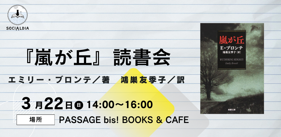 日時 2026年3月22日(日)14時~16時 課題本 『嵐が丘』エミリー・ブロンテ/著 、鴻巣友季子/訳 ※新潮文庫の新訳推奨 場所 PASSAGE bis! (東京... powered by Peatix : More than a ticket.