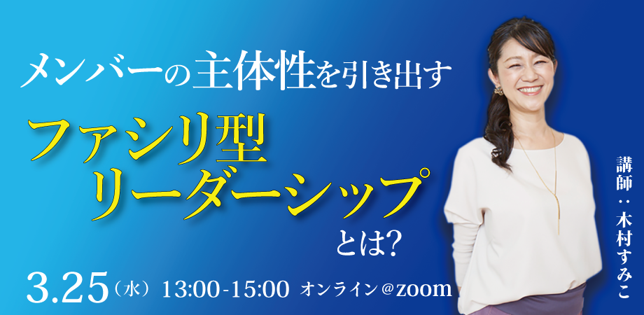 本セミナーは、このような課題をお持ちの方、効果的なリーダーシップを発揮したい方におすすめの、2026年5月30日(土)開講の「Edge Faci-Leader ファシリ型リーダーシップ開発トレーニング」(全4回、オンライン)のエッセンスを気軽にご体感いただくトライアルセミナーです。■□■────────────────────────■□■ピュア・エッジは「ファシリテーション」をツールとして、これからのリーダーに必須の「人間力」を培うプログラムを提供しています。他者を受容して、予定調和を破る、器の広い「ファシリーダー」へのステップアップを目指してみませんか。「学びが定着して実践力が身につく」と定評のあるピュア・エッジのセミナーでは、受講者が今抱えている具体的な課題を取り上げて、実感を伴った理解を促します。このセミナーも「今リーダーとして、どんな課題を抱えているか?」をテーマに、ディスカッション参加型で進めていきます。講師木村のファシリテーションをぜひご体感ください。【当日の流れ】・オープニング、自己紹介・テーマについてのディスカッションとレクチャー・Edge Faci-Leader 卒業生体験談シェア・気づきの振り返りと共有【スケジュール / 形式 / 参加費】日 時:2026年3月25日(水)13:00〜15:00形 式:オンライン(zoomを使用します。配信URLは、参加者に事前に申込時に記載のメールアドレスにご案内します。)参加費:5,500円(税込)【Edge Faci-Leader 参加者の声】・「ファシリーダーとしてのスキルとマインドセット」を、背景となる脳や認知のしくみなども含めて説明いただけたので、非常に理解し...