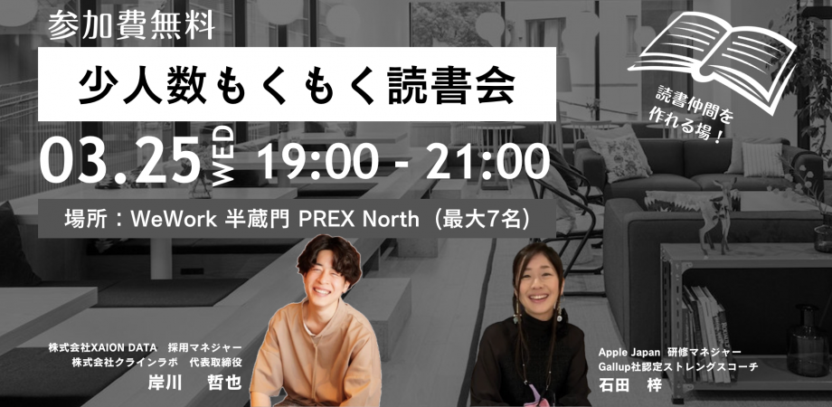 🗓日時:3月25日(水)19:00〜21:00 (19:00: 集合 / 19:20-20:30: 各自読書 / 20:30−21:00: 学びのシェア)