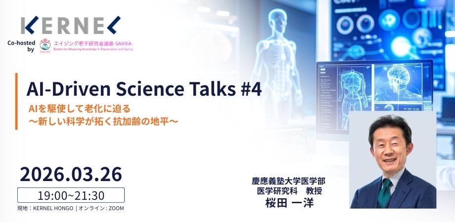 イベント詳細 AI-Driven Science Talksは、AIを研究・開発に取り入れている研究者をお招きし、科学・技術の未来を形づくる最前線のトピックを深掘りするシリーズ企画です。第四回となる今回は「AI x 健康長寿・抗加齢」をテーマに、AIを活用したメディカルデータサイエンスの第一人者を迎え、AIは医学・医療をどのように変えていくのかを議論します。