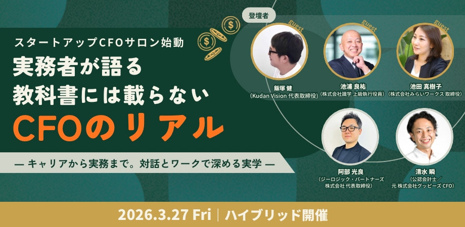 イベント詳細 【スタートアップCFOサロン始動】実務者が語る、教科書には載らないCFOのリアル― キャリアから実務まで。対話とワークで深める実学 ―