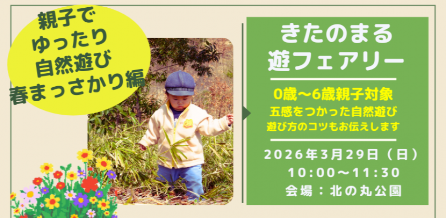 【 0₋6歳親子集まれ~!親子一緒に自然遊び~五感でのんびり季節を味わおう~】きたのまる遊フェアリー!都会の北の丸公園で、ゆったりと自然を満喫!身近な公園・身近な自然で、五感を使った自然遊びをしましょう。