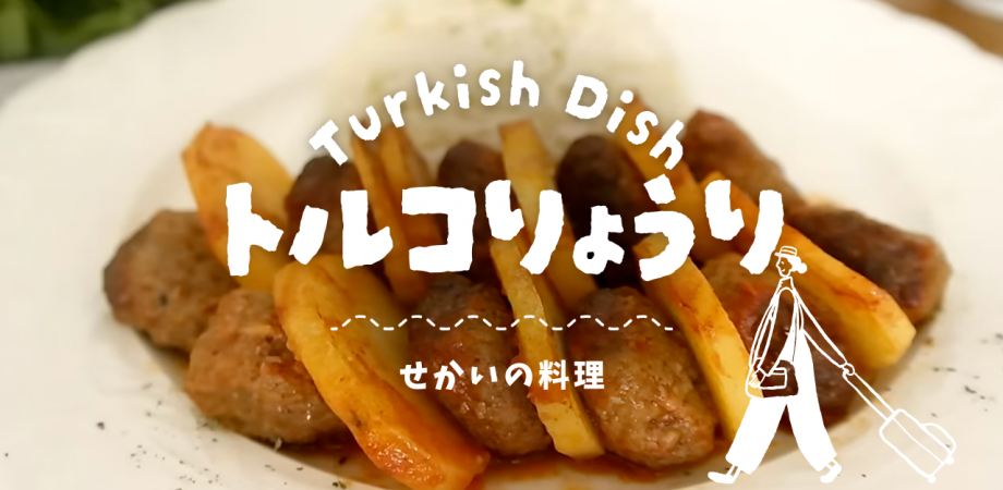 ② Fırında Köfte İle Patates Dizmesi(トルコ風ミートボールとポテトのオーブン焼き)ボリューム満点の人気家庭料理。