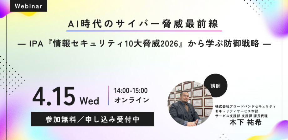 「AI活用を止める」のではなく、リスクを理解した上でどう使い、どう守るか。経営判断と実務対応の両面から、2026年に向けた実践的なセキュリティ対策を考える機会として、ぜひご参加ください。