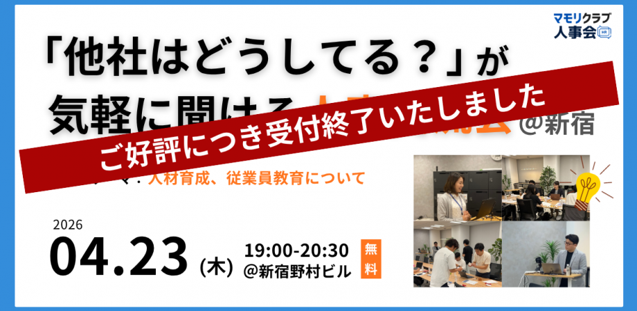 ■開催概要日時 :2026年4月23日(木)19:00~20:30会場 :新宿野村ビル27階(株式会社スリーエーコンサルティングoffice) (新宿駅より徒歩7分)参加費 :無料定 員 :リアル会場15名 ※定員に達し次第、受付を...