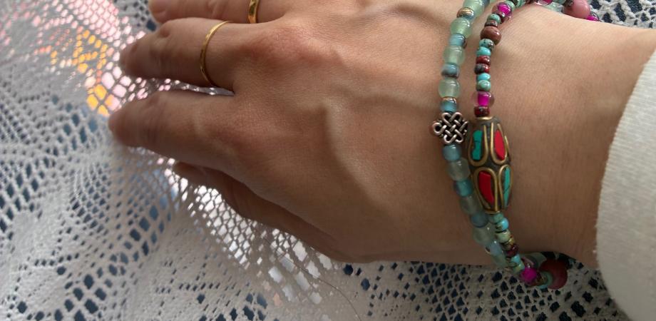 恵比寿・陶芸スタジオイエロークレイで制作したオリジナル陶ビーズを組み合わせ、