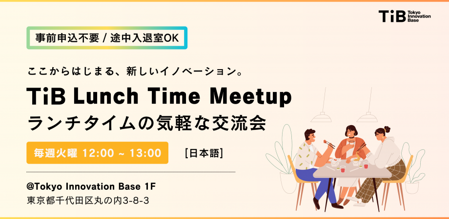 TIB Lunch Time Meetup〜ランチタイムの気軽な交流会〜 ■ イベント概要起業家、VC、アクセラレーター、そしてTIBパートナー企業の皆様など、スタートアップエコシ... powered by Peatix : More than a ticket.