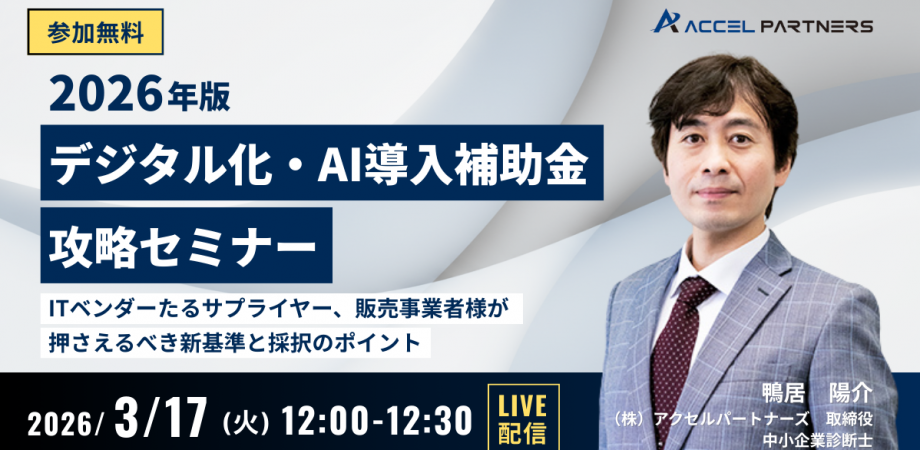 2026年版「デジタル化・AI導入補助金」攻略セミナー― ITベンダーたるサプライヤー、販売事業者様が押さえるべき新基準と採択のポイント ―