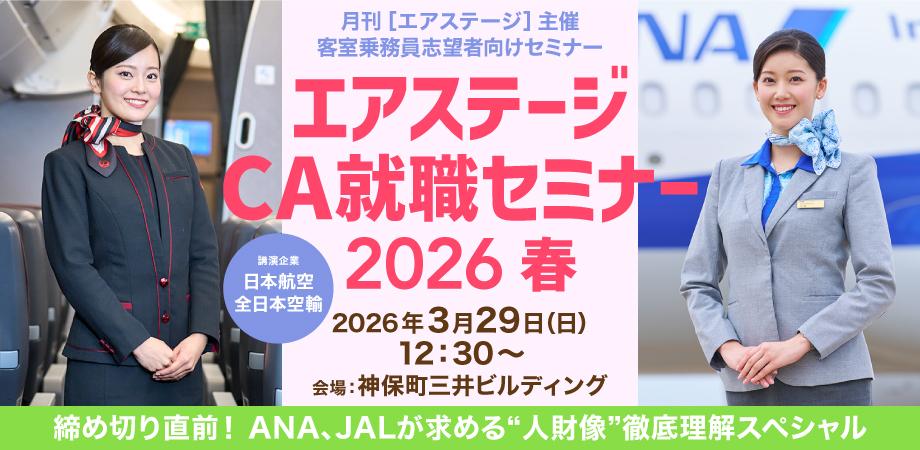 空の就職情報誌 月刊[エアステージ]は、客室乗務員(CA)志望者を対象としたイベント、「エアステージCA就職セミナー 2026春」を2026年3月29日(日)に開催します。