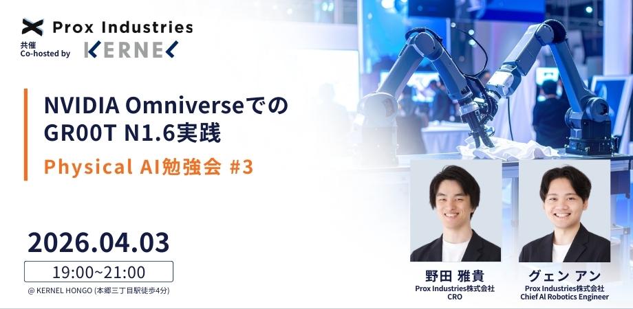イベント詳細 PhysicalAI勉強会は、PhysicalAIの社会実装を加速させるための勉強会です。松尾研発スタートアップ「Prox Industries」主催、KERNEL共催として定期的に開催しています。3回目となる今回は、NVIDIAの汎用ロボット基盤モデル「GR00T N1.6」にフォーカスします。Omniverseシミュレーション環境を用いた効率的な学習パイプラインを解説します。