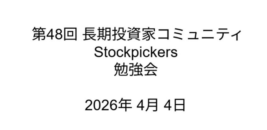 *申し込み締め切り〇締め切りリアルは満席になり次第、締め切りますオンライン 4月2日(木) 24時00分 (4月3日(金)0時)リアル会場は東京都内の貸会議室会場の場所は締め切り後にご連絡します。(注意!:開催場所は投資家バーStockPickersではありません)第48回 長期投資家コミュニティ stockpickers 勉強会を開催します!初心者、初級者も大歓迎です!奮ってご参加ください!勉強のために発表無しもOK・・・ですが、話をふるかもしれませんのでコメントお願いします。