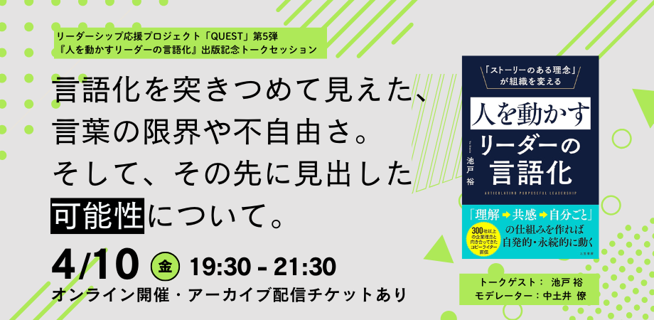イベント詳細 リーダーシップ応援プロジェクト「QUEST」第5弾。『人を動かすリーダーの言語化』 出版記念トークセッション
