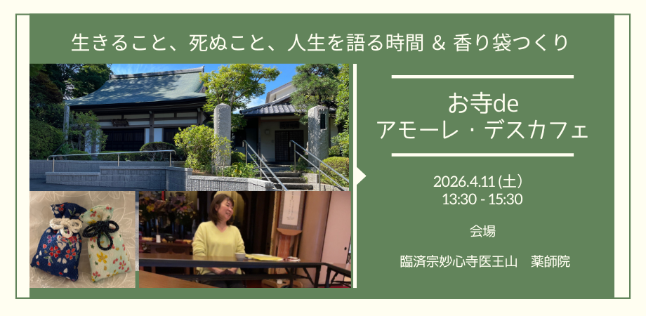 「ふとしたときに ”これでいいのかな” と思う方へ お寺deアモーレ・デスカフェ ~生きること、死ぬこと、人生を考える時間~ ... powered by Peatix : More than a ticket.