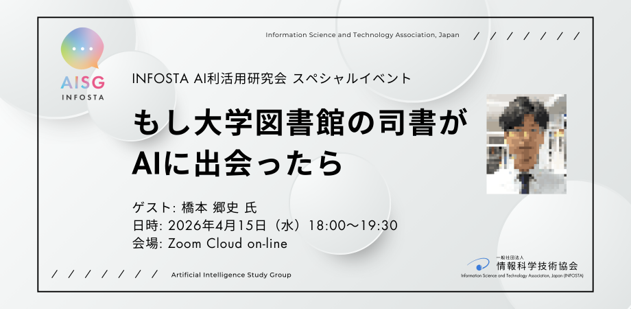 プラットフォーム: peatix / 主催者: 一般社団法人情報科学技術協会(INFOSTA)