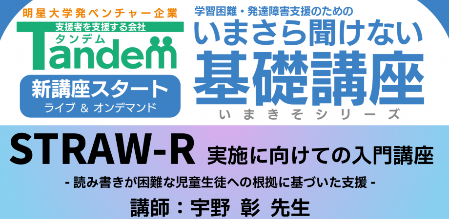 読み書きの困難を示す児童生徒をどのように理解し、どのように支援につなげればよいのでしょうか。本講座では、発達性ディスレクシア研究の第一人者であり STRAW-Rの開発者である宇野彰先生 を講師に迎え、読み書きの困難の理解と評価の基本を学びます。発達性ディスレクシアの理解を踏まえながら、読み書きの困難を評価するツールである STRAW-Rの基本的な考え方とデータの読み取り方を解説します。STRAW-Rの結果に出会ったときに、「この子の困難は何か」「どのような支援が必要なのか」を専門家として理解し、支援につなげるための入門講座です。