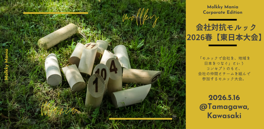 <おすすめポイント!!>✔️ 前回大会の2025秋の開催では約150チームが集まった日本最大級の会社対抗モルック大会です!✔️ 初心者でも気軽に楽しめるモルックだからこそ、「社内のコミュニケーション活性、交流」にも繋がる!✔️ 当日は、モルックイベントだけではなく、キッチンカーも多数出店、ご家族連れでも楽しめる1日になります!✔️ 豪華賞品を準備!入賞チーム以外にも、じゃんけん大会などでゲットできるチャンスもあります!