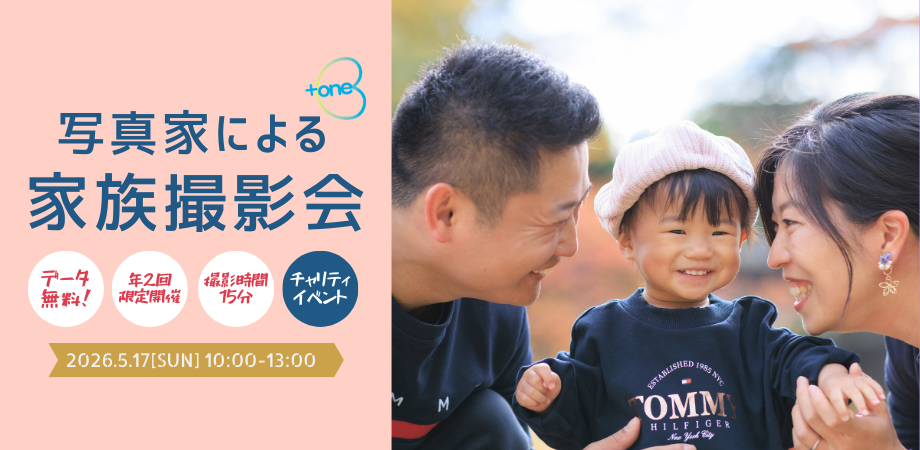 プロの写真家が「家族のいま」を独自の視点で切り取った写真を残すことが叶う、チャリティーイベントです。