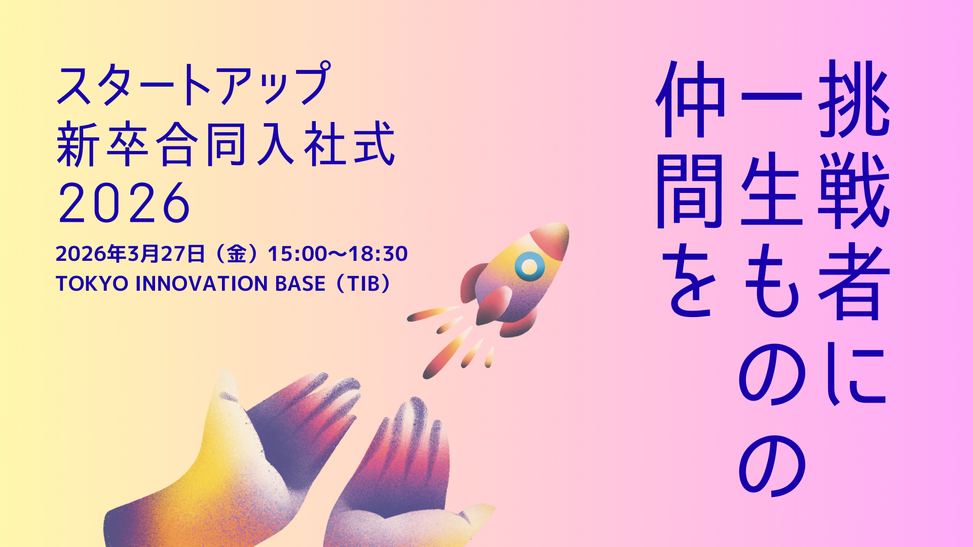 スタートアップ企業に新卒入社する新社会人に向け、社外同期ができるイベント「スタートアップ新卒合同入社式2026」を開催します。