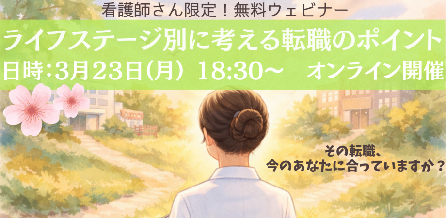 ウェビナー名:”ライフステージ別”に考える 転職のポイント 開催日時:3月23日(火)18:30~19:00 開催方法:オンライン(zoom) 対象者 :看... powered by Peatix : More than a ticket.