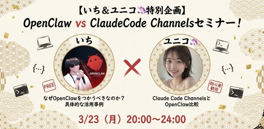 「OpenClawとClaude Code Channels、どう使い分けるべきか」が完全にクリアになる120分です。