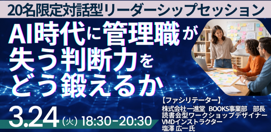 ▼詳細・お申込みはこちらから▼https://www.jpi.co.jp/seminar/17727【開催日時】2026年03月24日(火) 18:30 - 20:30【このような方にお薦め】・組織の生産性やチーム力を高めたい経営層・管理職の方・AI時代における人間力・対話力を磨きたい方・組織の対話や関係性に課題を感じている方・自らの価値観やリーダーシップを見つめ直したい方【本会の目的】生成AIの普及により、情報へのアクセスは飛躍的に容易になりました。しかしながら、組織の力を高めるためには、個々人の資質と関係性の質を高めることが不可欠です。ここでいう人間力とは、人柄・人脈・人智が相互に作用する総合的な力を指します。企業の持続的成長は、まさにその土台の上に築かれます。本セッションでは、ハーバード大学による長期研究に基づく書籍『グッド・ライフ』を題材に、日常の前提や常識を改めて問い直し、自らの判断軸を再構築する機会を提供いただきます。単なる読書会ではなく、実務家同士の対話を通じて、意思決定や組織運営に活かせる視点を持ち帰っていただく場です。