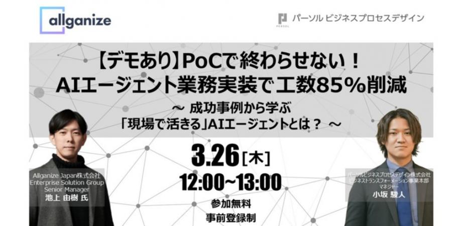 イベント詳細 【デモあり】PoCで終わらせない!AIエージェント業務実装で工数85%削減 ~ 成功事例から学ぶ「現場で活きる」AIエージェントとは? ~