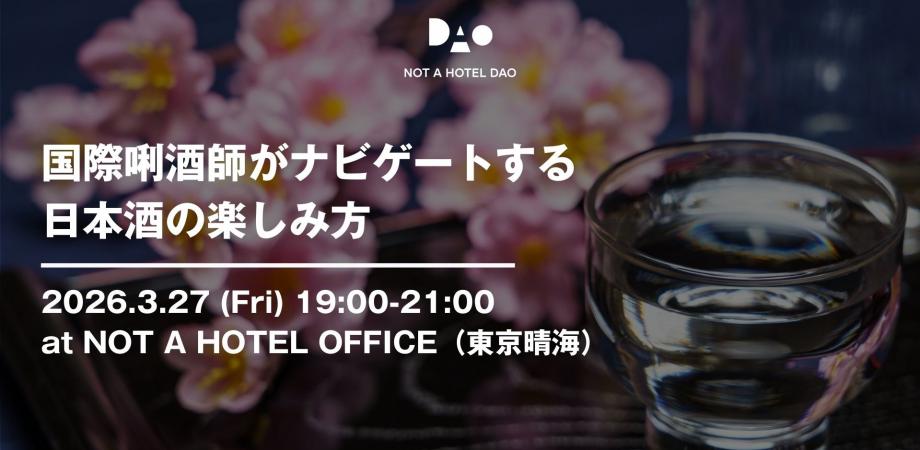 本イベントについて本イベントでは、NOT A HOTEL DAOのCommunity Managerであり国際唎酒師でもある青山奈津美が、実際にNOT A HOTELで提供されている日本酒や青山イチオシの一本を使って、気軽に楽しめる日本酒の飲み比べ体験をご案内します。
