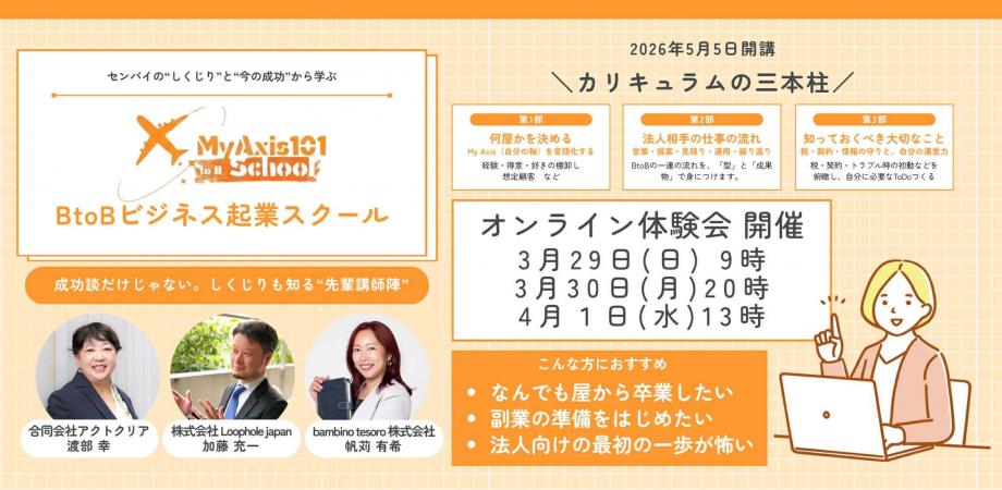 イベント詳細 こんなスクールが最初からあったらすごくよかったのに!から始まったBtoBビジネス起業スクール「My Axis 101」