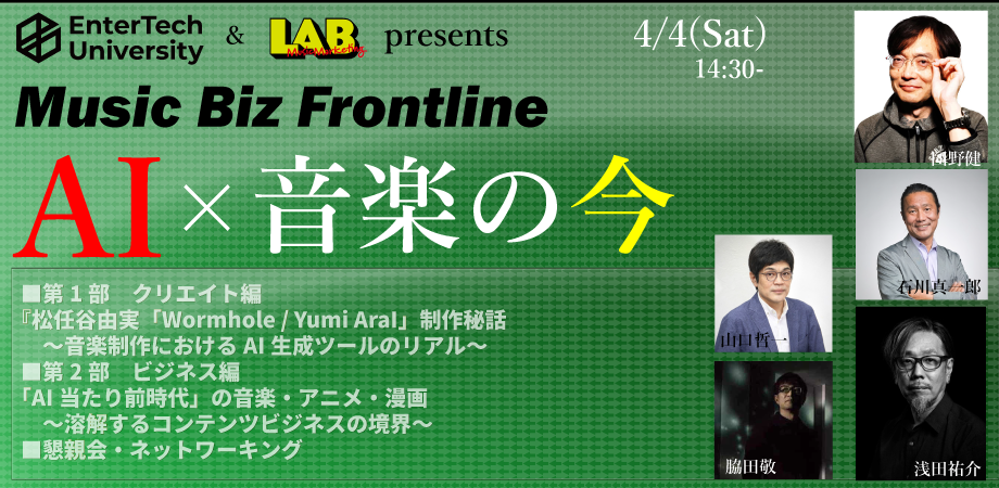 今回のテーマは「AI」。AIは、インフラの隅々に浸透した。使わないという選択肢は無い「AI当たり前時代」。かつて、スマホ、SNS、サブスクが、音楽シーンと音楽ビジネスを根底から変えたように、AIは社会全体、そして音楽を確実に変えている。