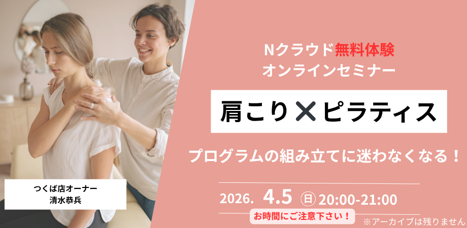 この無料体験セミナーでは、肩こりの姿勢評価とプログラムの組み立て方をテーマに、ピラティスインストラクターが現場で使いやすい形で内容を整理してお伝えします。