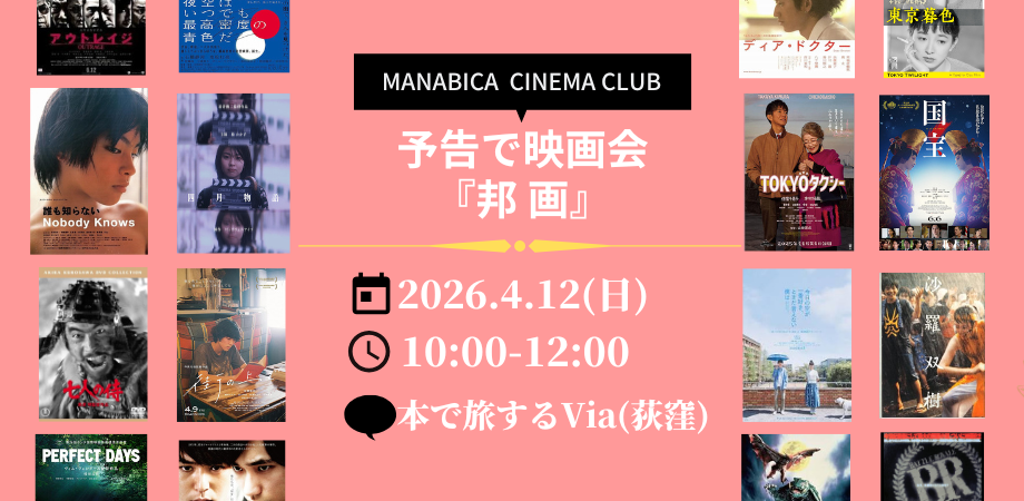 参加者がお一人ずつ映画を紹介するイベントです。荻窪にあるブックカフェ「本で旅するVia」さんで行います。