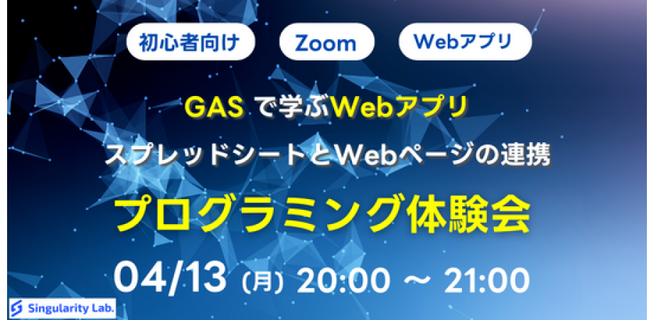 パソコンを使って仕事をすることが当たり前となり、DX化が叫ばれている昨今、ITスキルを持つ人材がますます重要となる時代になってきました。しかし、このような状況に対して、世界的にIT人材が不足しており、日本でも数十万人規模で足りてないと言われております。シンギュラリティ・ラボ(シンラボ)では、ITスキルを持った人材を育成するため、未経験者の方に少しでもプログラミングについて触れてほしいため、無料のプログラミング体験会を開催しています。