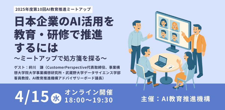 タイトル:2025年度第10回AI教育推進ミートアップ「日本企業のAI活用を教育・研修で推進するには~ミートアップで処方箋を探る~」